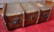 Now my curiosity was aroused - who owned these contraptions? I surveyed the area behind the spinning wheel and found a girl sitting on a huge sea chest with metal clasps and locks, stickers and labels. [Ed: The chest not the girl.] I asked her if the butter churn and spinning wheel was hers and she nodded in the affirmative. She was about my age and looked bushwhacked.The reason why was obvious after listening to her story, which was on par with JL’s.